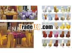 Our factory manufacture all kinds of table clothes,table skirts, bowknot, napkins, chair cover.